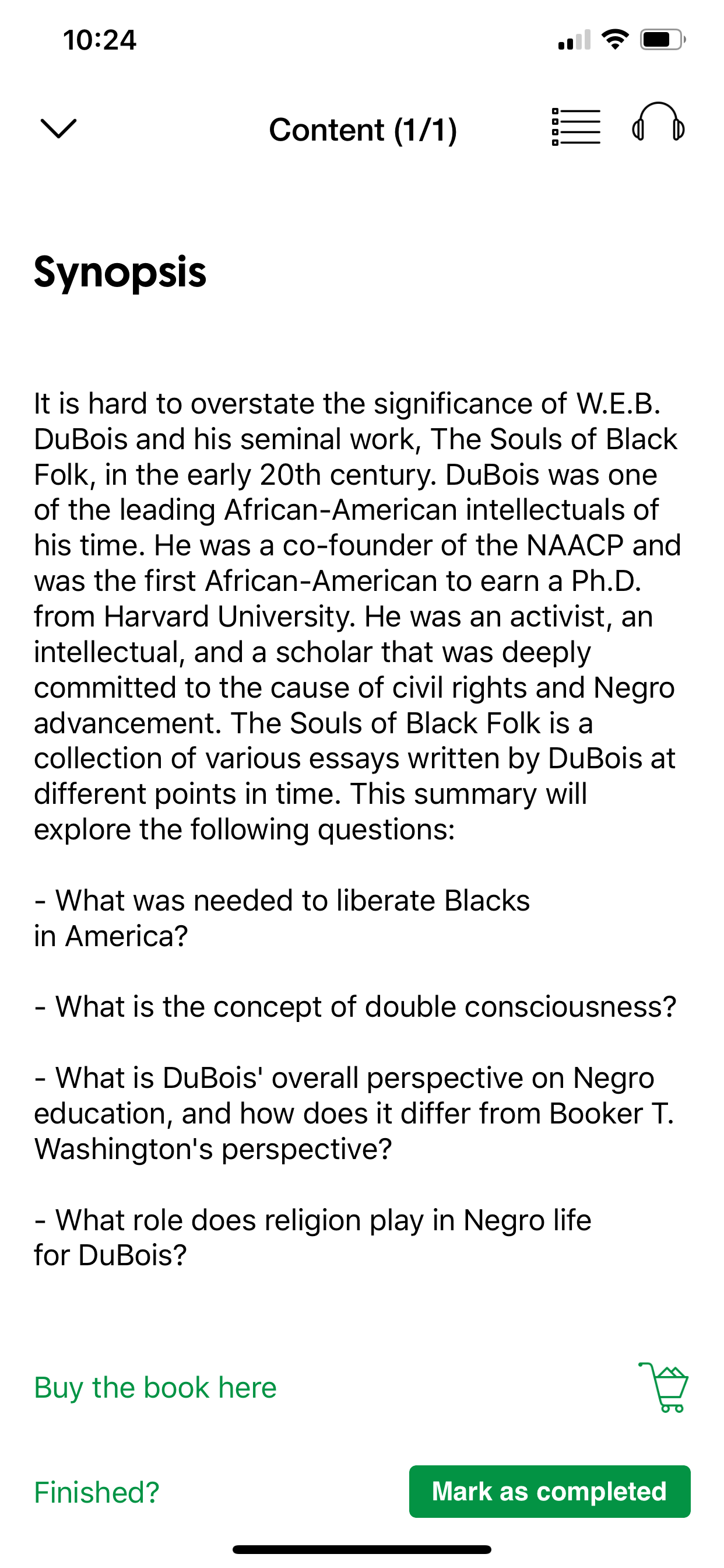 Driving? Exercising? Running errands? No problem. Our app enables you to easily read distilled content or listen on-the-go.